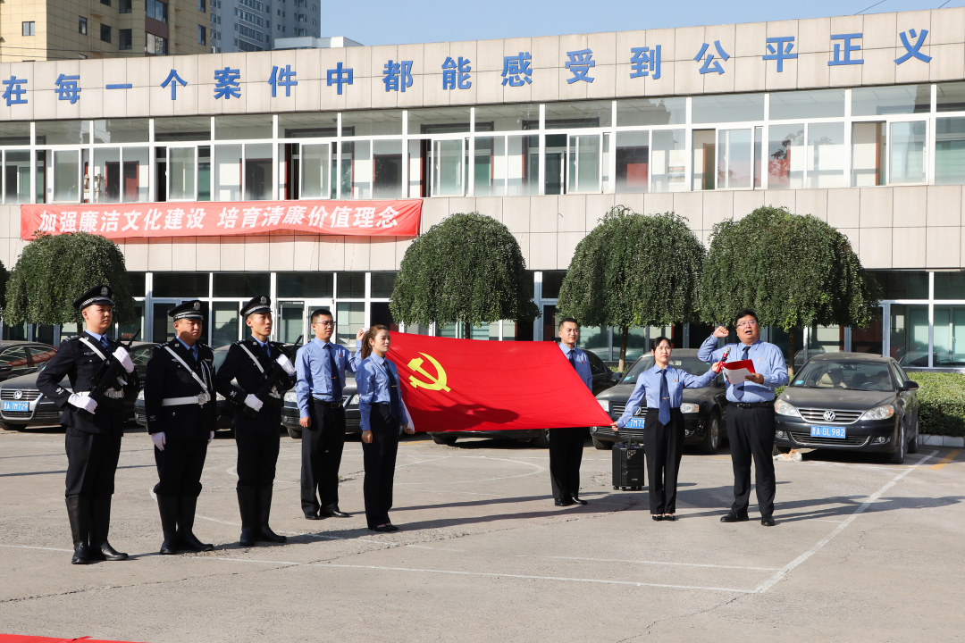 我院青年干警张晨、李强以饱满的热情,在国旗下深情讴歌中国共产党乘风破浪、扬帆远航为我们领航。
